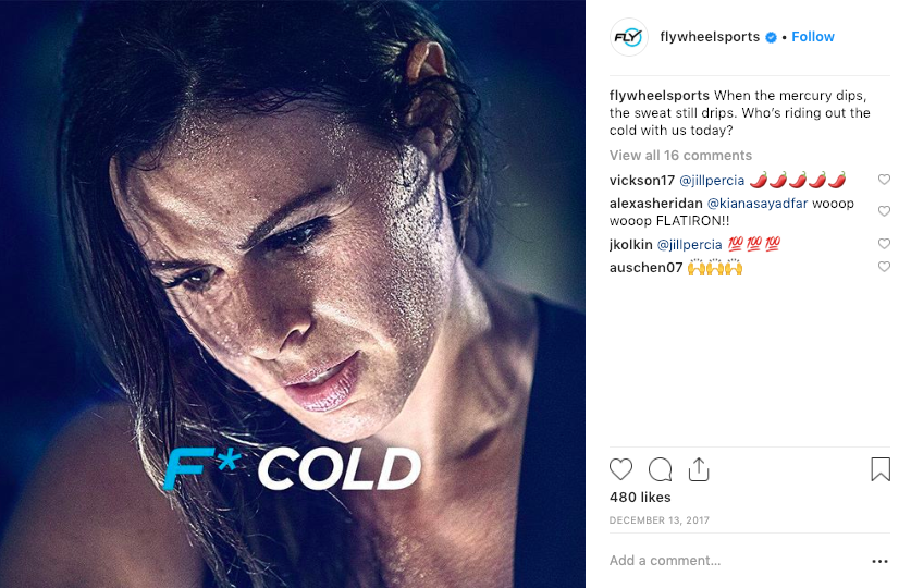 To help cut through the clutter of the ever-increasing popularity of their competition, we knew we had to go pedal-to-the-metal (pun very much intended) in the boldness department. Transforming the first letter of the brand name, we not only personified the overall competitive nature of Flywheel’s founders and instructors, but, more importantly, encouraged prospective riders to tell their inner-naysayer/excuse-maker to F* off and hop on.